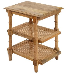 HomeRoots 24" Natural Solid Wood End Table With Two Shelves