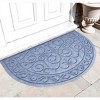 Ready to withstand heavy foot traffic, this 24-inch x 36-inch gray scrollwork semi circle outdoor polypropylene door mat is an ideal option for the front door or entrance way of your home or business. Crafted from polypropylene with a tone-on-tone scrollwork design, this mat is not only functional but is a visually appealing accessory to welcome people to your home or business. Add this decorative mat to create a practical yet inviting welcome to all who enter. 24-inch h x 36-inch w x 0.5-inch d.