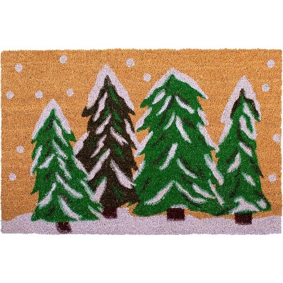 Known for it's extreme durability and ability to withstand heavy foot traffic, this 24-inch x 36-inch lime green dark green and red Christmas trees outdoor coir door mat is an ideal option for the front door or entrance way of your home or business. Crafted from coconut husks, this mat is not only functional but is an an eco-friendly and visually appealing accessory. The naturally bristled texture of coir is an efficient way to clean dirt and mud from shoes and is easy to clean and maintain. Add this festive and decorative modern Christmas mat to create a practical yet inviting welcome to all who enter. 24.00-inch h x 36.00-inch w x 0.60-inch d.