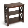 Sturdy and built to last, this 25" dark brown two tier standard bookcase helps you display your books, files, photos, and treasures in an organized fashion. Made from durable wood, in a dark brown finish, this bookcase is durable, sturdy and timeless. The functional 2 shelf tiers offer fantastic storage space. Great to use independently or pair with additional units to create a different look and add even more storage. Carefully crafted to fit in tight spaces, you can turn almost any nook into a stunning display showcase for books, plants decor and more. 25" H x 22" W x 12" D