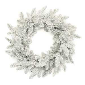 Add a touch of winter wonderland with this heavily snow dusted artificial wreath. This stunning circle-shaped wreath features a classic pine design with lots of white faux snow flocking that adds a touch of elegance to any indoor space. Crafted from durable plastic, it promises long-lasting beauty without the fuss of maintenance. The versatile look allows it to complement a variety of decor styles, enhancing your living area or entryway. 24.50-inch h x 24.50-inch w x 6.00-inch d.