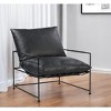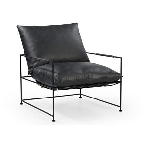 Fill your living room, bedroom, or office with fashionable seating options with this 28-inch black genuine leather distressed arm chair. This gorgeous solid color black arm chair is masterfully upholstered in durable genuine leather. The high quality metal inner frame flaunts convenient armrests and a cushion back that are complimented by soft and comfortable cushioning. 32.5-inch h x 28-inch w x 30-inch d.