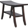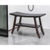 HomeRoots 28" Dark Brown Teak Rectangular Shower Bench With Shelf