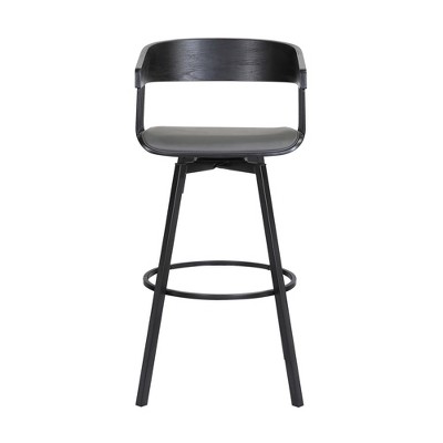 HomeRoots 30" Light Gray and Black Faux Leather and Iron Low Back Bar Height Bar Chair