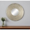 If you want to add some brightness to your living space, the 31-inch silver round dimensional thick frame accent mirror is perfect for you. Inside the wide sculpted frame there is a round shaped mirror which will open up any space you hang this piece in. Its transitional style makes this the perfect versatile accent piece for most any decor. This beautiful mirror will add brightness into any room your choose put this mirror in. 31.3-inch H x 31.3-inch W x 2.2-inch D