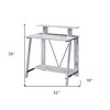 This 32-inch antiqued white writing desk will bring classic design and styling to your living room, home office or bedroom. Designed to easily fit into most spaces, this classically shaped rectangular desk will turn your room into a productive workspace. Made for the ultimate in convenience and versatility, this desk can be assembled in either direction. Built to last, this sturdy desk is designed for comfort and efficiency for years to come. 35-inch H x 32-inch W x 18-inch D