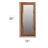 This 32-inch brown live edge solid wood full length hanging mirror will be an elegant addition to your bedroom, dressing area, hallway, or living room. Framed with solid wood, this mirror will bring practical application and fashionable design to your space, adding some mid-century flair to your decor. Features quality craftsmanship in every facet that ensures durability and long-lasting wear. Produced with premium quality glass for a beautiful reflection, this mirror will provide an exceptional visual experience. 32-inch h x 72-inch w x 4-inch d.