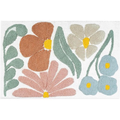 HomeRoots 32" Pink And White Cotton Flowers Floral Floral Bath Rug