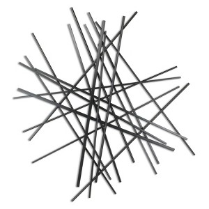 Unique and decorative, this 35-inch x 34-inch black metal abstract hanging dimensional sculpture will leave a lasting impression. Easily create a focal point in your room with this generously sized modern decor that features a unique and abstract shape and design. Handmade with care, this piece brings some authenticity to your surroundings. Instantly liven up your space with this art that brings color and dimension to your walls. 35-inch h x 33.5-inch w x 1.25-inch d.