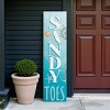 The 36-inch aqua blue and white solid wood sandy toes porch sign is the perfect outdoor accessory to enhance your garden space. Crafted from solid wood in a rustic distressed finish, this porch sign boasts a traditional style that adds a charming touch to any setting. Its vibrant aqua blue and classic white colors evoke a fresh summer vibe, making it an ideal addition during the warmer months. This decorative piece not only serves as a visual focal point but also welcomes guests with its playful beachy sentiment. Elevate your decor indoors or out, with this delightful sign, ensuring a warm and inviting atmosphere for all who visit. 36.00-inch h x 10.00-inch w x 1.00-inch d.