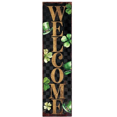 The 36-inch black gold and green solid wood luck St Patrick's day porch sign is an eye-catching addition to your outdoor decor. Crafted from solid wood, this porch sign exudes traditional charm that enhances the festive atmosphere of your garden. This piece not only showcases your holiday spirit but also serves as a welcoming invitation for guests. The durable construction ensures it can withstand outdoor elements while maintaining its elegant appearance. Elevate your outdoor space with this delightful accessory that reflects both style and seasonal joy. 36.00-inch h x 11.00-inch w x 1.00-inch d.