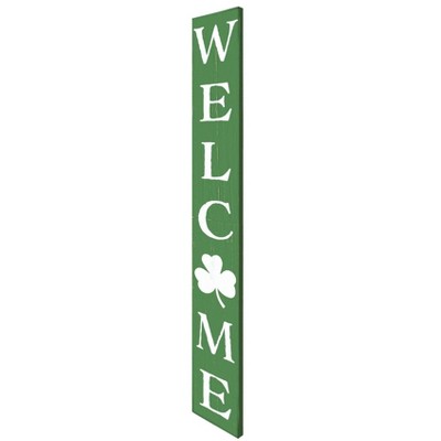 The 36-inch black gold and green solid wood welcome st patrick's day porch sign is the perfect outdoor accessory to enhance your seasonal decor. Crafted from solid wood, this traditional porch sign showcases a harmonious blend of black, gold, and green colors that capture the festive spirit of the holiday. Its charming design invites guests to embrace the joyful atmosphere of st patrick's day, making it ideal for enhancing your porch or entryway. This durable and eye-catching sign will stand out in any garden setting, providing an elegant and welcoming touch. Elevate your holiday celebrations with this delightful piece that brings a sense of cheer and warmth to your home. 36.00-inch h x 11.00-inch w x 1.00-inch d.