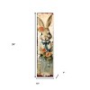 The 36-inch off white and blue solid wood bunny porch sign is a charming addition to your outdoor space. Crafted from durable solid wood, this porch sign exudes a rustic style that complements any garden or patio setting. Featuring a delightful bunny design, the vintage style of this girl bunny enhances any entryway, making it a delightful addition for the Easter season, but is neutral enough to be used all year long. Elevate your outdoor decor with this whimsical sign that embodies the spirit of springtime and celebration. It’s a perfect way to express your love for the season while adding warmth to your porch or garden area. 36.00-inch h x 10.00-inch w x 1.00-inch d.
