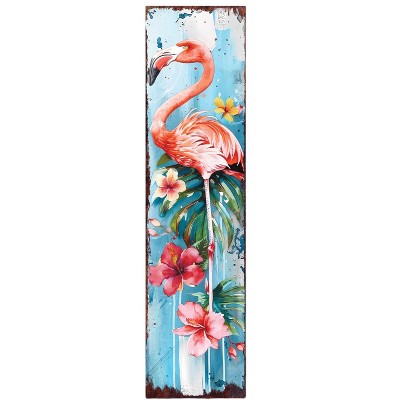 Transform your outdoor space with the 36-inch pink and white solid wood tropical floral welcome porch sign. Crafted from durable solid wood, this porch sign promises lasting beauty and resilience against the elements. Embracing a cheerful tropical style, it effortlessly complements various spaces while adding a pop of color. The word "Welcome" create a cheerful and enticing atmosphere, making it perfect for greeting guests. This eye-catching accessory serves not only as decor but also as a charming way to express your hospitality.. 36.00-inch h x 10.00-inch w x 1.00-inch d.