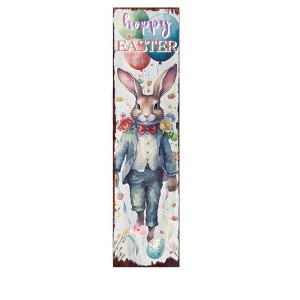 The 36-inch white and blue solid wood happy easter bunny porch sign is a charming addition to your outdoor decor for the easter celebration. Crafted from solid wood, this rustic piece combines durability with a delightful seasonal theme. Its vibrant blue and white colors bring a fresh, cheerful touch to your porch or garden area. Perfect for welcoming guests, this sign embodies the spirit of spring, making it an ideal choice for your holiday decorations. Enhance your outdoor space with this whimsical sign that captures the joy of the easter season while adding personality and charm to your home. This sign is sure to become a beloved part of your yearly festivities. 36.00-inch h x 10.00-inch w x 1.00-inch d.