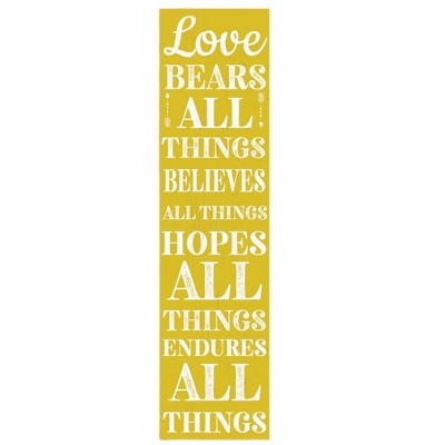 The 36-inch white yellow and green sunflowers solid wood porch sign is a charming addition to any outdoor space. Crafted from solid wood, it promises durability while enhancing your porch's aesthetic. The transitional style seamlessly blends with various decor themes, making it a versatile choice. Featuring vibrant green, white, and yellow hues, this sign brings a cheerful touch to your garden. Perfect for welcoming guests or adding a personal flair, it stands out as a delightful accessory for your outdoor areas. This eye-catching piece not only serves as decoration but also adds a sense of warmth and hospitality to your home’s exterior. Elevate your outdoor experience with this beautiful sign that brightens up any entryway. 36-inch h x 11-inch w x 1-inch d.