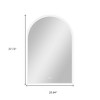 Add beauty to your bathroom or home with this 38-inch clear lighted arch unframed bathroom vanity mirror. This frameless mirror with LED lighting will open up the room as it reflects the light beautifully from every angle, adding some modern flair to your decor. This mirror will be a great useful addition to your home but will also help elevate the space in the room. Ideal to mount above your bathroom sink or vanity in your bathroom, this high quality piece has both an anti-fog function and the ability to adjust the light brightness to provide an exceptional visual experience. 37.73-inch h x 25.94-inch w x 1.26-inch d.