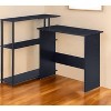This 39-inch black l shape writing desk will bring classic design and styling to your living room, home office or bedroom. Made for the ultimate in convenience and versatility, this desk can be assembled in either direction. Forged with premium craftsmanship and design, this desk is built to last. 34-inch H x 39-inch W x 32-inch D