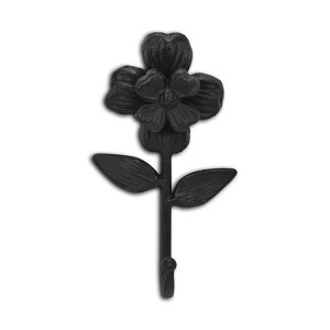 HomeRoots 4" Black Cast Iron Flower Wall Hook