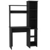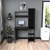 Spruce up your home office space with this minimalist Modern Black Particle Board Office Desk with Storage Cabinet. This modern design features a side bookcase with five open shelves for books, decor and or work files, providing you with ample storage space. The quality particle board material allows for a sturdy structure that has a spacious top surface to place a computer screen and keyboard. 63.9" x 39.7" x 17.8"