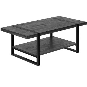 This table features quality construction from manufactured wood and an updated monotone color scheme with black as the main color on both the top and the base. Help to keep your space organized with the included single shelf. This classic rectangular table will be a great accent in any room It has a fresh design that will definitely breathe some fresh air into your interior. This coffee table is the sturdy, reliable and stylish answer to your living room needs. 17.75" H x 47.25" W x 23.75" D