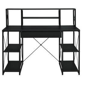 Look like an executive when you add this 47-inch black computer desk to your office space. With a classic shape and style, this well made rectangular desk is a stylish way to keep your office space looking good. Designed so that you can adjust to your room and style preferences, this desk can be assembled in either direction. A single drawer gives this desk some hidden storage for your office essentials. Built to last, this sturdy desk is designed for comfort and efficiency for years to come. 41-inch H x 47-inch W x 24-inch D