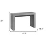 Our 47-inch gray wood block console table a great addition to any room, serving as a stylish and decorative element. This rectangular table is ideal for up against the wall, can free stand in a room, or sit behind the sofa perfectly. Featuring a dark gray glossy lacquered finish, this table is ideal for living rooms, bedrooms, home offices, and lounge areas. This console is not only good looking but multi-functional and practical addition to your space. 30-inch h x 47.3-inch w x 15.6-inch d.