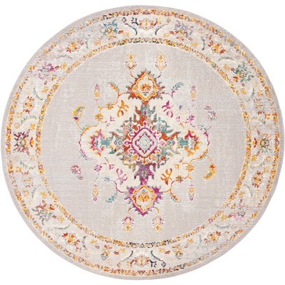 HomeRoots 5' Gray Round Damask Power Loom Area Rug