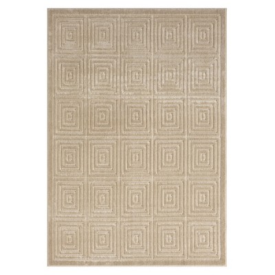- Machine woven area rug with a contemporary beige design.