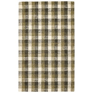 Charcoal Khaki And Ivory Wool Plaid Hand Tufted Area Rug