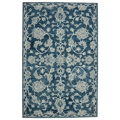 HomeRoots 5' X 8' Ivory Blue And Burnt Orange Floral Area Rug With Fringe