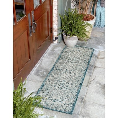 HomeRoots 5' X 8' Teal Blue And Gray Striped Washable Indoor Outdoor Area Rug
