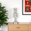Set a festive christmas mood with this 6-inch silver cast iron christmas nutcracker hand painted figurine. A perfect decorative addition for anyone who loves a stylish look and feel. This handmade sculpture showcases exquisite craftsmanship, making it a standout piece for holiday decor. The intricate detailing of this figurine enhances its visual appeal, embodying the spirit of the season. Constructed from durable cast iron, it combines both artistry and longevity, ensuring it will be a cherished part of your holiday traditions for years to come. Its purposeful distressing adds character and charm, making it a delightful conversation starter. 5.50-inch h x 2.25-inch w x 2.25-inch d.
