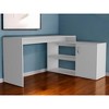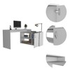 Enhance your office space with this sleek 60-inch l shape computer desk in white. Crafted from durable manufactured wood, this desk features cabinets and shelving for additional storage options. Its modern design and two interior shelves make it a practical choice for any contemporary workspace. Built for comfort and efficiency, this desk is the perfect addition to your home office or study. 30.1-inch H x 59.6-inch W x 45.8-inch D