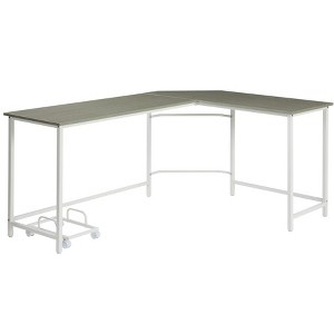 This 66-inch gray and white l shape computer desk will help to turn your office space into an executive suite. Designed so that you can adjust to your room and style preferences, this desk can be assembled in either direction. Forged with premium craftsmanship and design, this desk is built to last. 30-inch H x 66-inch W x 47-inch D