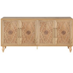 HomeRoots 68" Natural Distressed Carved Geometric Sideboard with Four Doors
