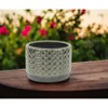 This 7-inch gray geometric ceramic indoor outdoor round pot planter is only practical, but it's also a beautiful addition to your outdoor decor and serves as a perfect way to bring life into any setting. Made of ceramic with a decorative geometric pattern, this planter not only looks good but is built to last. The round, shape of this planter will bring a sense of wholeness to your backyard. Add color and creativity to your outdoor space when you add potted plants. This piece is practically designed to fit most any aesthetic and outdoor space. 4.75-inch H x 6.5-inch W x 6.5-inch D