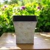 This 7-inch gray recycled plastic indoor outdoor square pot planter is only practical, but it's also a beautiful addition to your outdoor decor and serves as a perfect way to bring life into any setting. Made of recycled plastic, this planter not only looks good but is built to last. The practical, straight-edged shape of this planter is perfect to add clean lines and good looks to your backyard. As a bonus, the extra protective layer of zinc will ensure the planter’s quality and durability. Marking your territory. Use this planter to let the world know that you’re proud of your plants. Realize the emotional and health benefits plants bring into our lives. . 7-inch H x 7.25-inch W x 7.25-inch D