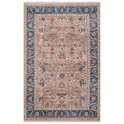 Teal Brown And Beige Oriental Area Rug With Fringe