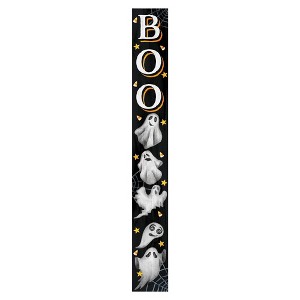 The 72-inch black white and orange halloween ghost solid wood porch sign is a perfect addition to your outdoor accessory decor for the halloween season. Made from solid wood, this porch sign showcases a traditional style that captures the essence of halloween festivities. Its striking color palette of black, white, and orange adds a festive flair to your home, making it an eye-catching focal point for your porch or garden. This versatile piece not only enhances your outdoor decor but also invites a playful spirit to your seasonal celebrations. Whether you're hosting a gathering or simply wishing to decorate your space, this charming sign will elevate the ambiance of your outdoor area. 72.00-inch h x 10.00-inch w x 2.00-inch d.