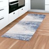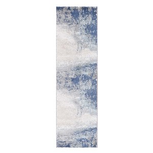 Set an inviting tone in your space with this 8-foot dark blue and gray abstract runner rug. Built to last, this rug crafted from polyester fibers is known for its durability and long lasting appeal. Rugs are a great way to showcase your style, hide imperfections, warm your home and reduce noise. This rectangular shaped rug features a abstract design that will add a functional and decorative accent to your space. This modern style runner makes a great accent for the hallway, in front of cabinets, in the laundry room, or any other space you need a narrow and long rug. 30-inch h x 96-inch w x 0.4-inch d.
