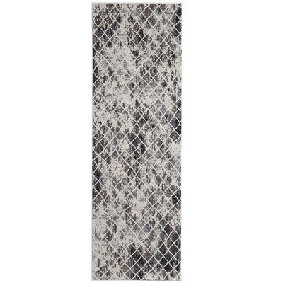 This 8-foot gray and ivory abstract power loom runner rug, is a great way to add warmth to a room. This runner shaped rug features a abstract design that will add a functional and decorative accent to your space. Ideal for spaces with kids and pets, this rug is stain resistant to help repel dirt and spilled liquids. This smaller sized rug is just what you need for your walkway, or in front of door, cabinet, refrigerator, or chair. 34-inch h x 94-inch w x 0.39-inch d