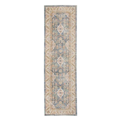 This 8-foot ivory blue and burnt orange floral runner rug with fringe, is a great way to add warmth to a room. Built to last, this rug crafted from polypropylene fibers is known for its durability and long lasting appeal. Rugs are a great way to showcase your style, hide imperfections, warm your home and reduce noise. Tassel ends bring a timeless and fashionable look to your interior. This casual style runner makes a great accent for the hallway, in front of cabinets, in the laundry room, or any other space you need a narrow and long rug. 30.00-inch h x 96.00-inch w x 0.39-inch d.