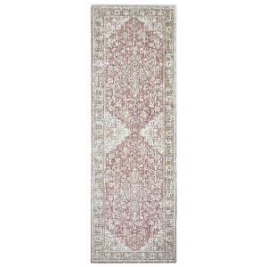 This 8-foot pink and gray medallion runner rug, is a great way to add warmth to a room. Built to last, this rug crafted from polyester fibers is known for its durability and long lasting appeal. Rugs are a great way to showcase your style, hide imperfections, warm your home and reduce noise. This traditional style runner makes a great accent for the hallway, in front of cabinets, in the laundry room, or any other space you need a narrow and long rug. 30.00-inch h x 96.00-inch w x 0.08-inch d.