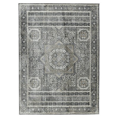 HomeRoots 8' X 11' Gray and Black Geometric Power Loom Worn Faded Area Rug