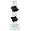 - Features a modern and contemporary optical crystal layered geometric block design in a chic clear and black color combo.