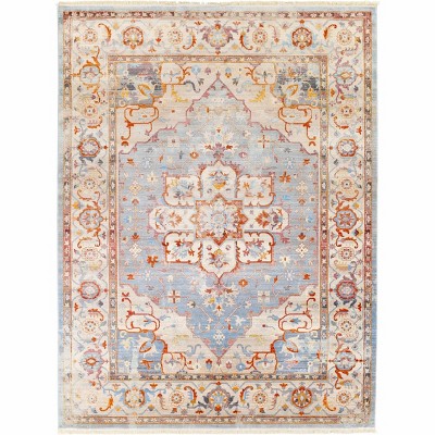 A: The area rug is classically shaped in a rectangular form, suitable for various spaces.