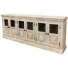 HomeRoots 93" Antiqued White Distressed Solid Wood Sideboard with Six Glass Doors