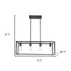Brighten up your space with this gorgeous black metal four light caged rectangular hanging pendent light. With its black finish, this light fixture gives off a modern and updated vibe that can blend with industrial design or even modern farmhouse decor. A great light for kitchen, dining room, foyer, lobby, lounge, or bar. This fabulous hanging light is a great way to add some design and brightness to any space in your home. 5.7-inch h x 9.3-inch w x 30.1-inch d.