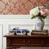 Homage to one the most popular British classic cars, the c1961 Jaguar E-Type Sculpture is an authentic replica of this automotive icon with unprecedented beauty and superb performance. This handmade model, made 100% out of metal features many original details like steering wheel, seats, and bumpers. This sculpture with a British flag paint is an exact replica of the model that featured in the Austin Powers films. Perfect gift for movie fans and automobile enthusiasts. 4" x 13" x 5"